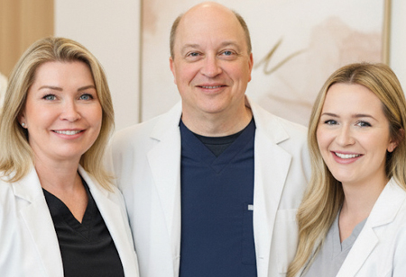 Dr. Michael Poss, MD, Double Board-Certified in Anesthesiology and Interventional Pain Management and Co-owner, Emily Ugarte, Licensed Master Esthetician (LME)
